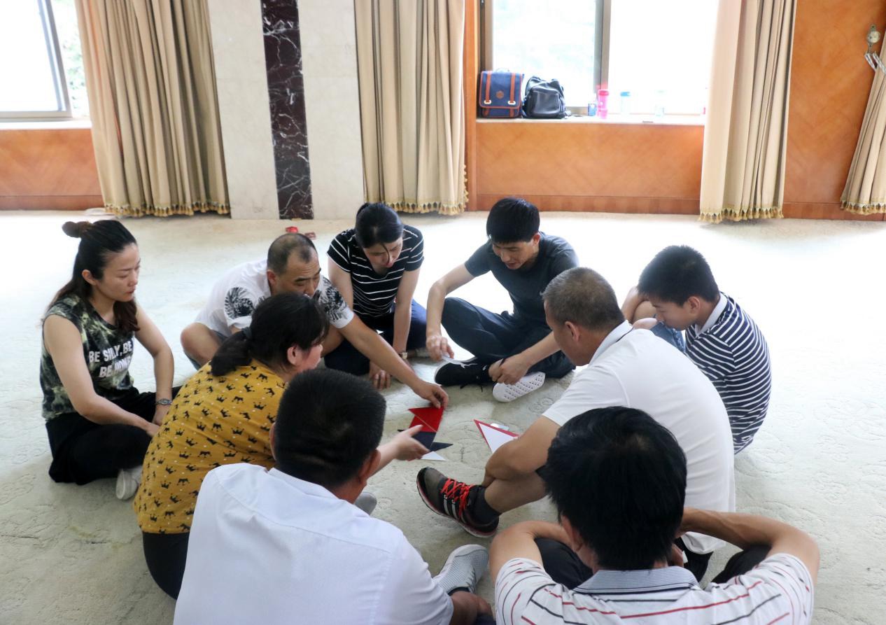 參訓(xùn)人員隨機(jī)被分為四個(gè)隊(duì)伍并確定了各自的隊(duì)長、隊(duì)名和口號(hào)。隨后開始了拓展訓(xùn)練項(xiàng)目——閃電行動(dòng)、驛站傳書、七巧板等項(xiàng)目,這些項(xiàng)目必須在團(tuán)隊(duì)相互配合下才能完成。七巧板這個(gè)項(xiàng)目共分成七個(gè)小組,培訓(xùn)師主要是讓學(xué)員領(lǐng)悟“有效領(lǐng)導(dǎo)在一個(gè)公司中的重要地位”和“團(tuán)隊(duì)協(xié)作和溝通的重要性”。培訓(xùn)師宣講項(xiàng)目規(guī)則后,項(xiàng)目正式開始。每組拿到“任務(wù)書”和“圖形表”后,就去照著圖拼圖,但是,手中道具不夠,現(xiàn)有的板卡不足以拼成“圖形表”中的任何一種圖形的。結(jié)果沒多久,七個(gè)組就開始亂成一堆了,有的搶走了其他組的七巧板拼圖,有人想組織現(xiàn)場秩序,有人不知所措,一典型的“無組織”狀態(tài)浮現(xiàn)了。教練規(guī)定的時(shí)間很快就過去了,只有第六組拿了110分,其他組成績很差。在這個(gè)項(xiàng)目中第七組作為七巧板項(xiàng)目的管理組,因?yàn)闆]有人出來組織和領(lǐng)導(dǎo)大家,沒有人來協(xié)調(diào)相互的關(guān)系,整個(gè)團(tuán)隊(duì)缺乏明確的任務(wù),導(dǎo)致這個(gè)結(jié)果。通過這個(gè)拓展項(xiàng)目讓我們深刻體會(huì)到了“管理的重要性、領(lǐng)導(dǎo)的重要性、團(tuán)隊(duì)溝通和協(xié)助的重要性”。